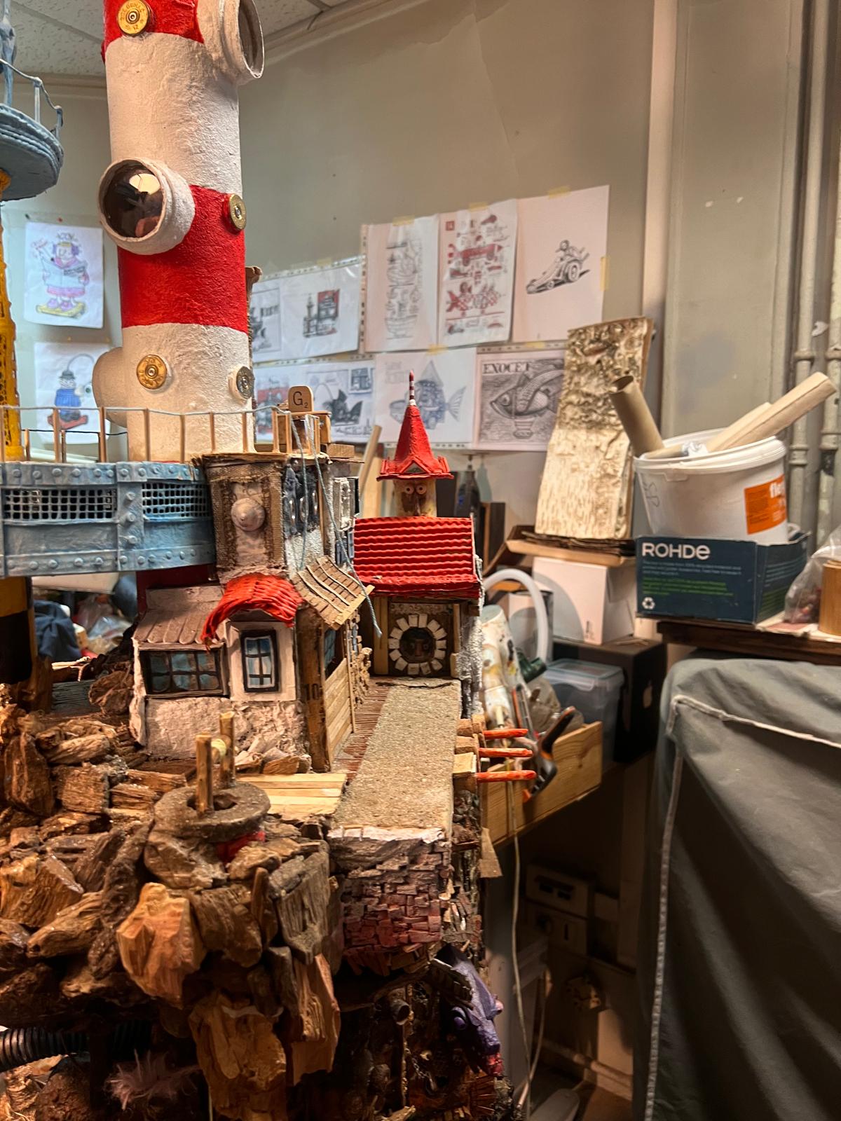 Jean-Paul Van der Elst, quant à lui, utilise son espace comme un véritable laboratoire créatif où il laisse libre cours à son imagination : robots, tableaux, totems ou grandes tours… Il occupe depuis 1 an et demi cet espace privilégié, à quelques pas de chez lui.