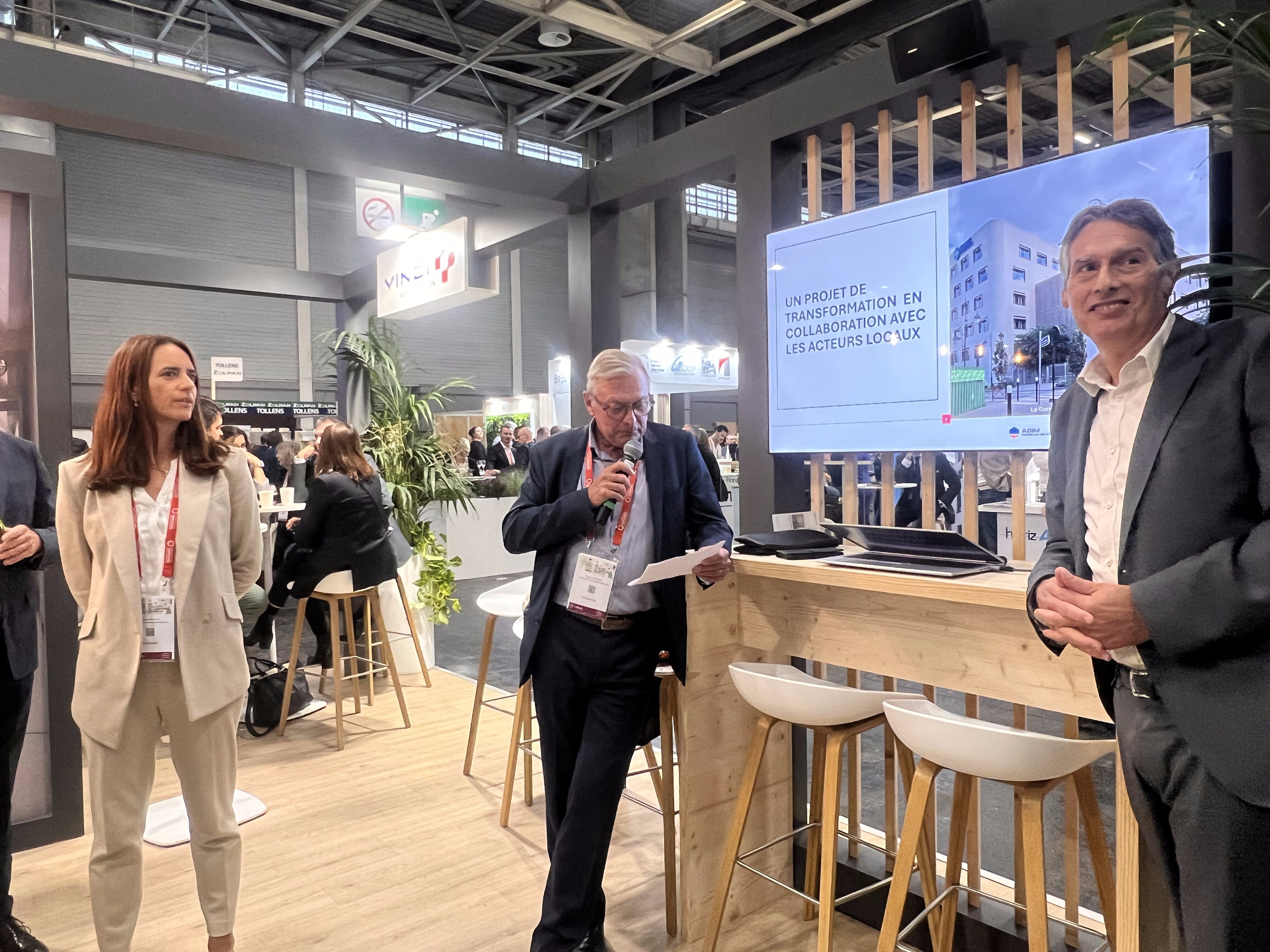 Enfin, sur le stand de VINCI Construction, la FTI et ADIM ont présenté le projet du 41 avenue de Verdun 1916, à La Garenne-Colombes (92). Baptisé New Side, il illustre l’ambition d’une transformation intégrée au territoire : reconvertir un ancien immeuble de bureaux en un programme de 473 logements, dont 172 pour jeunes actifs et 300 étudiants, ainsi qu’un commerce en rez-de-chaussée.